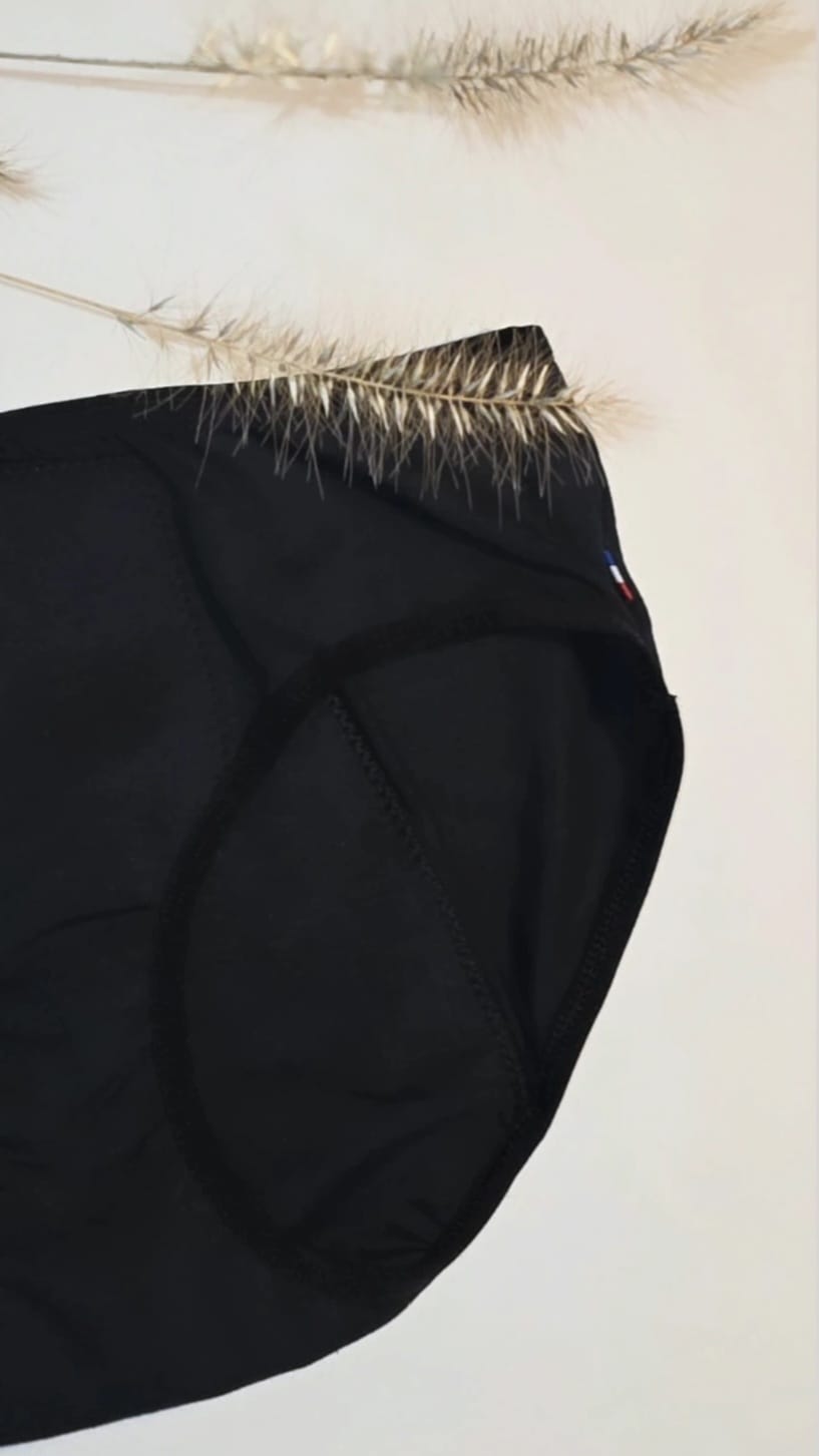 Culotte fabriquée en France avec des matières certifiées sans produits chimiques, sans PFAS.
